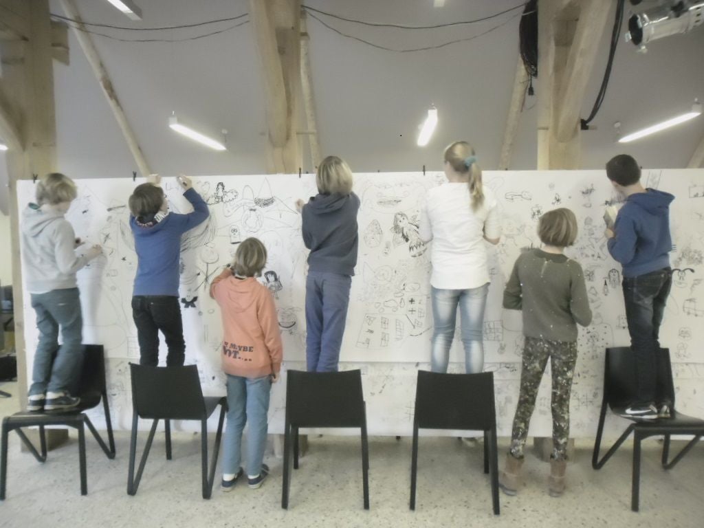 In aanloop naar de expositie namen 910 kinderen deel aan de workshops. Met Bette Krieg als inspiratie en witte vellen van 2x2 meter gingen ze voortvarend aan de slag. Het omgaan met zo'n groot canvas was voor velen een uitdaging, maar leidde tot verrassende samenwerkingen. Tijdens de expositie werd heel het Drawing Centre behangen met hun werk.